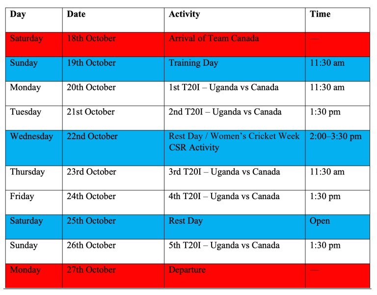 We are thrilled to send our Canadian Women’s National Team to participate in the Victoria Series. Uganda’s women’s side is a strong and competitive team, and this tour will provide invaluable experience for our players as we continue to grow women’s cricket in Canada.